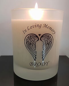 All our Memorial Candles are personalised if required, and hand poured with 100% Soy Wax. Made with compassion and empathy to provide you with the means to " light a candle to honour and symbolize a life lived, always remembered and forever loved".